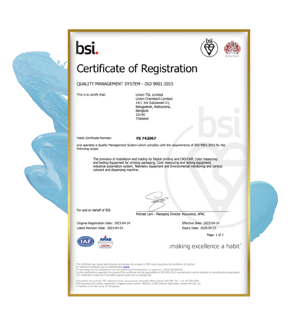 ก่อตั้งเมื่อพ.ศ. 2548 ในเครือ Union TSL Limited เป็นบริษัทแรกที่ได้นำระบบผสมสี Autotint มาใช้ ส่งผลให้บริษัทสีรายใหญ่ในประเทศไทยได้เปลี่ยนแปลงวิธีการดำเนินธุรกิจมาจนถึงทุกวันนี้ ด้วยทีมขายและวิศวกร ตลอดจนบริการด้านเทคนิคและการใช้งานที่ผ่านการฝึกอบรมมาเป็นอย่างดี เราจึงสามารถรับประกันได้ว่าลูกค้าของเราจะได้รับผลิตภัณฑ์และโซลูชั่นที่เหมาะสมกับความต้องการของพวกเขา ด้วยการสนับสนุนด้านวิศวกรรมและเทคนิคและการใช้งานที่ไม่เป็นสองรองใคร